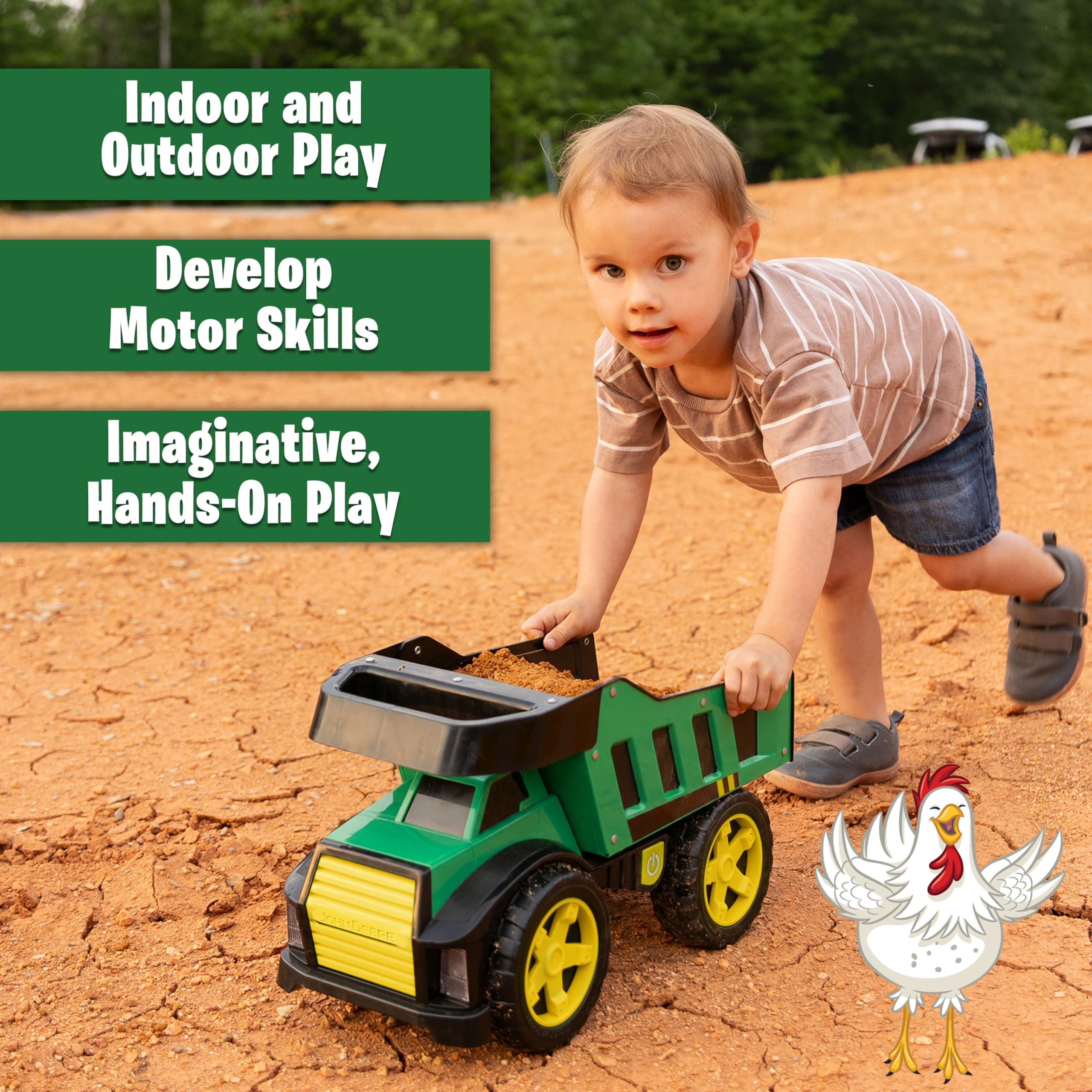 John Deere 16" Steel Dump Truck, Realistic Lights & Sounds, Heavy Duty Metal Truck Bed, Extra Large Wheels, Rugged Construction Vehicle Toy for Kids, Ages 3+, Indoor and Outdoor Play—