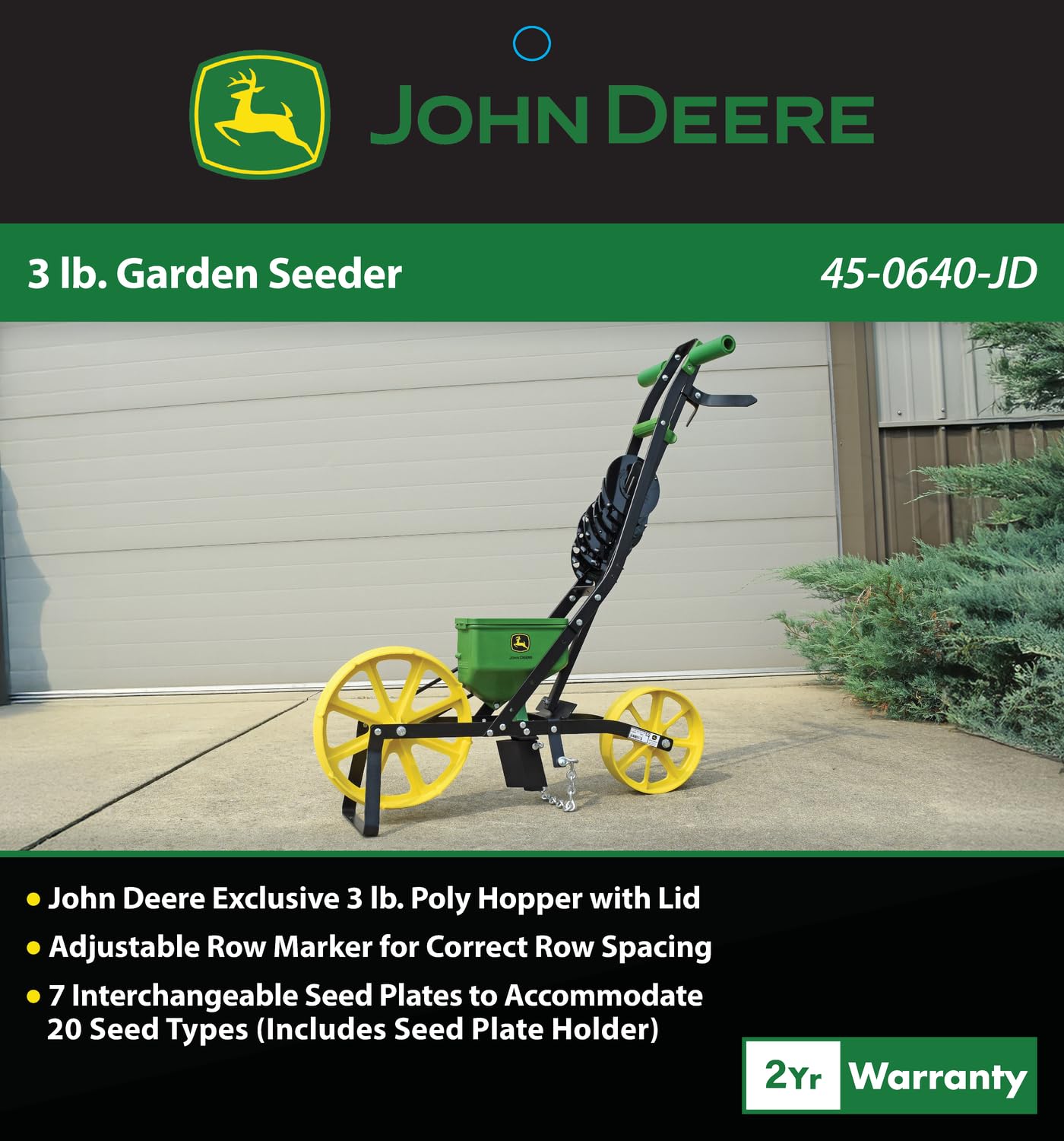 John Deere 3lb Garden Seeder with 7 Seed Plates, Sweet Corn Planter for use in Prepared Soil
