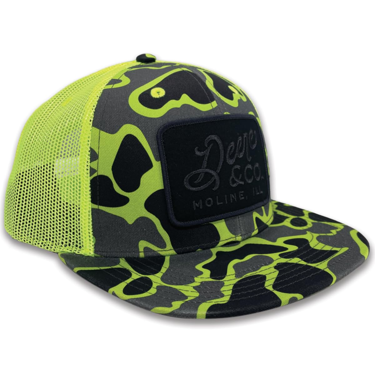 John Deere Adult Camo Mesh Trucker Hat, Hi-Viz Yellow and Black