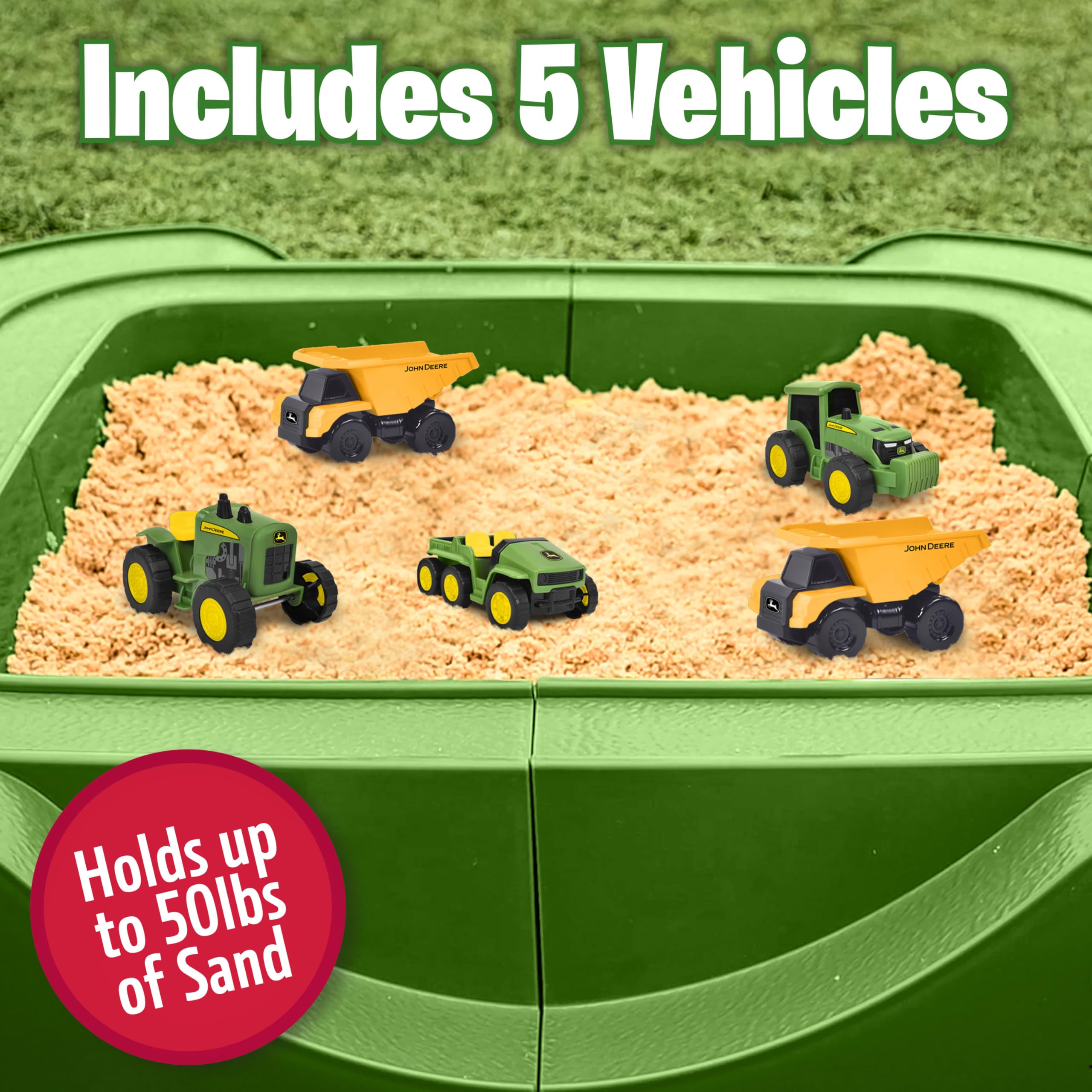 John Deere Sandbox Playset with Protective Cover, Includes 5 Realistic Trucks & Tractors, Perfect Outdoor Sand Toy for Kids, Imaginative Play & Active Backyard Fun—