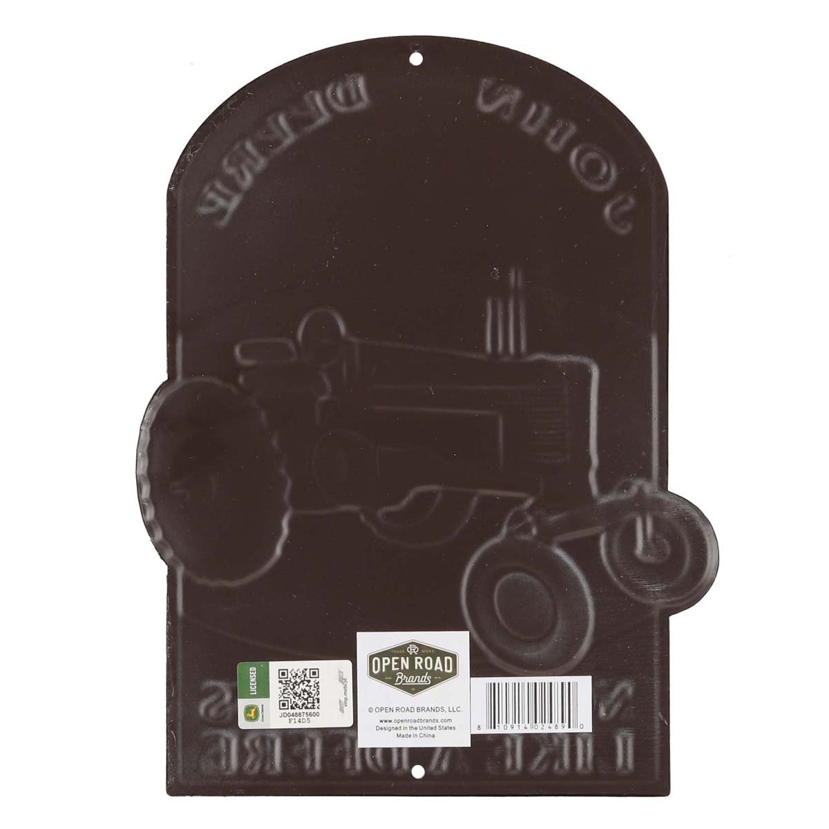 - John Deere licensed product: Nothing runs like a Deere, and nothing is more nostalgic than this vintage wall art! Featuring the 1876 John Deere logo and an old tractor shape that expands off the edge of the sign, this decor is a must-have tribute to pure Americana.