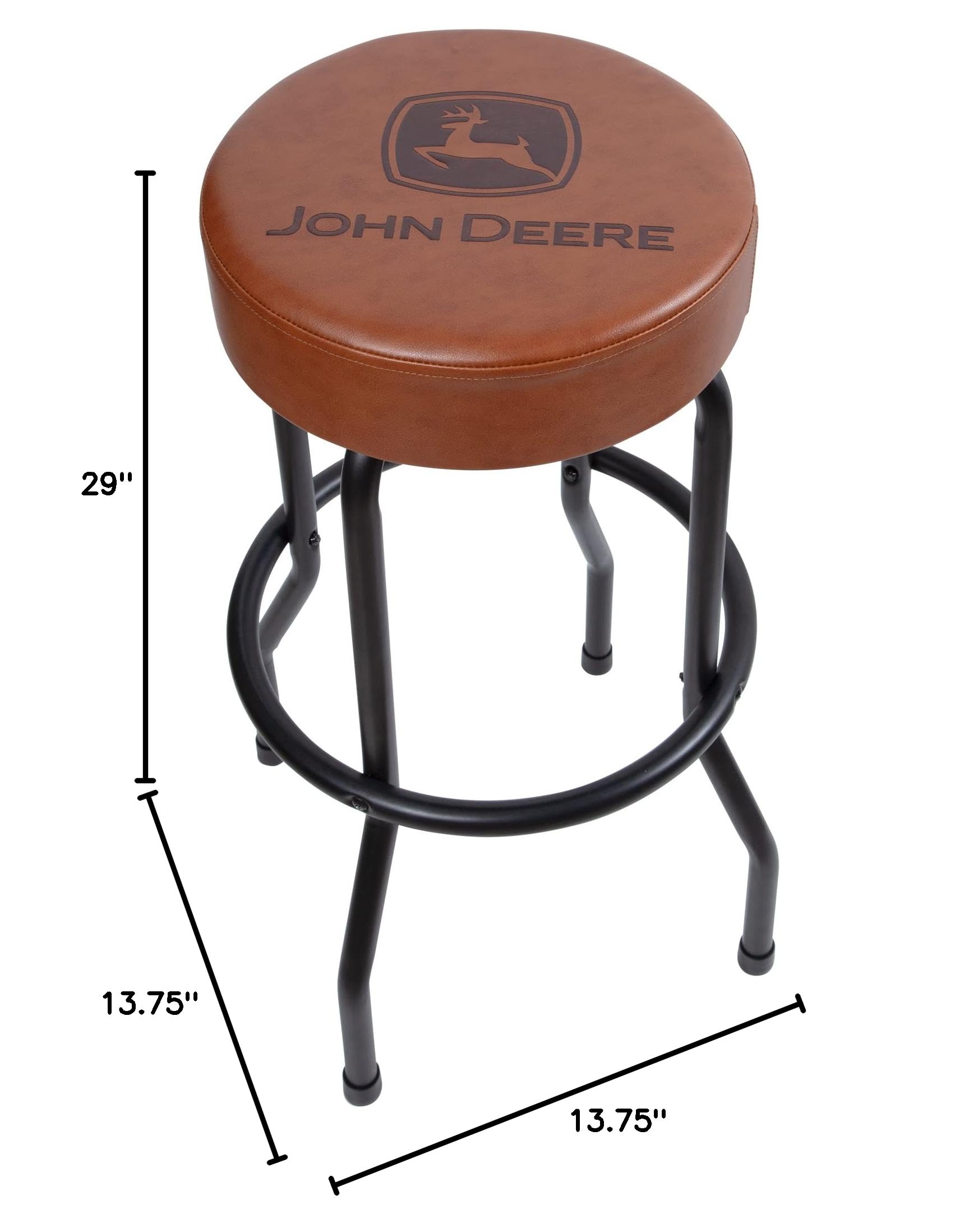Plasticolor 004806R01 John Deere Tan Embossed Logo on Brown Garage and Game Room Stool with Black Legs—